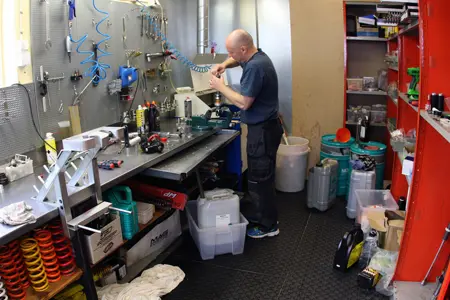 I vår verkstad gör vi alla typer av reparationer, allt från det enklaste till hela ombyggnader till fullfjädrade race hojar. En av vår specialitet är fjädring som vi jobbat med i över 25 år.